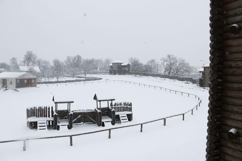Также на Замковой горе возведены три сторожевые башни, въездная брама с элементами деревянных защитных стен. Своё место нашла здесь и княжеская усадьба. Её возвели над музеефицированным раскопом с остатками деревянных построек древнего Мстиславля.