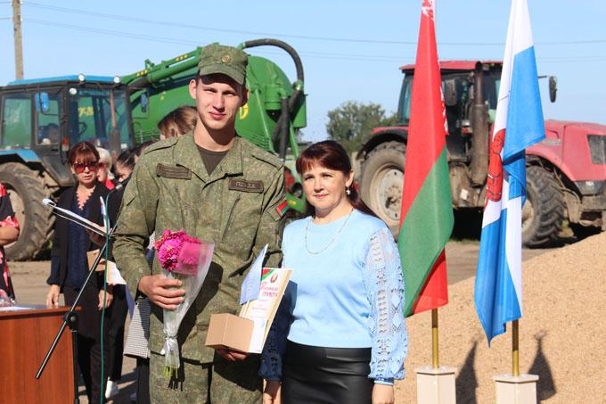 На территории мехдвора ОАО «Мазоловское» Мстиславского района состоялись торжественные проводы военнослужащих, которые трудились на жатве. Им вручили благодарности и подарки.