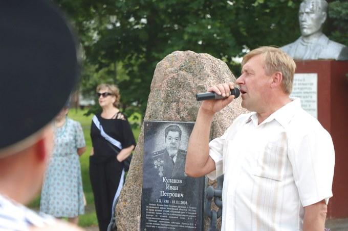 У памятного знака героическому земляку мичману Ивану Кулакову начался митинг. Юрий Васильев поздравил участников и гостей праздника, отметив вклад каждого ветерана в историю отечественного флота.