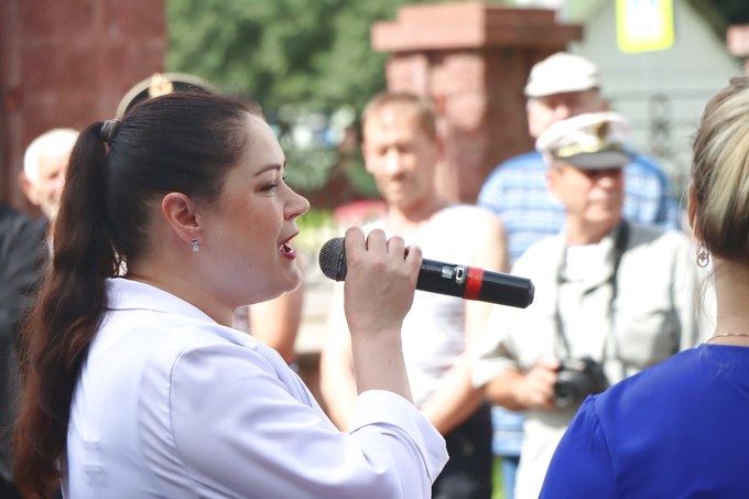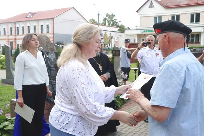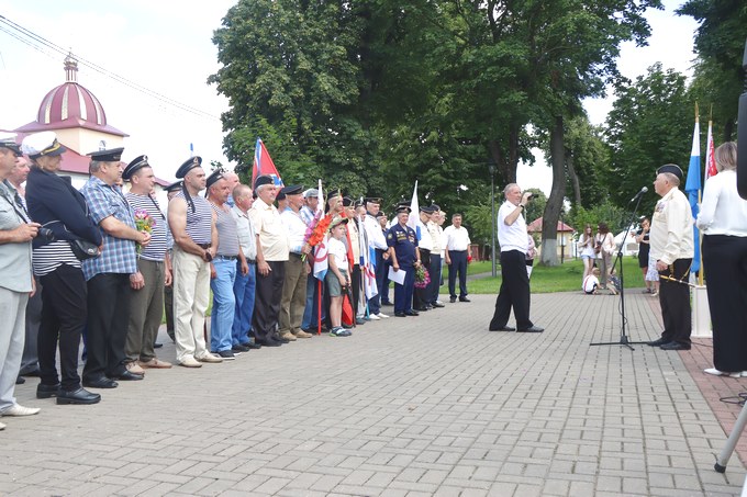 Начальник отдела идеологической работы и по делам молодёжи райисполкома Ольга Лазарева обратилась к собравшимся. Она подчеркнула, что несмотря на отсутствие морских границ у Беларуси, ветераны с гордостью хранят память о службе на советском флоте и празднуют День военно-морского флота.