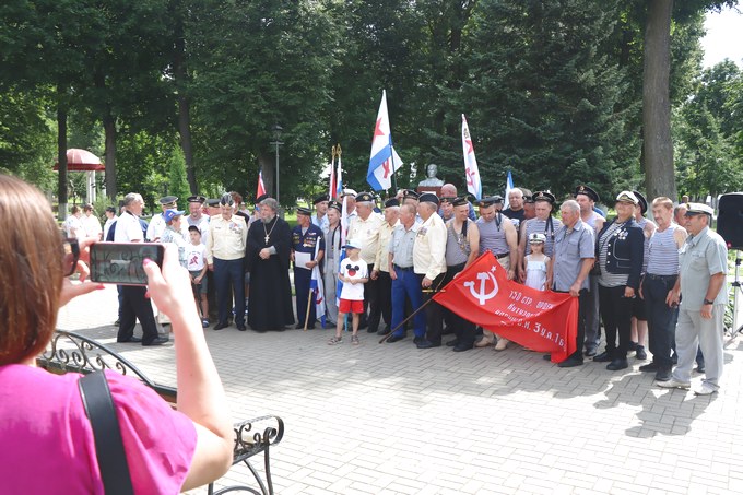 Колонна ветеранов в форме, с флагами и медалями прошла по улицам города. По обоим сторонам маршрута собрались местные жители, чтобы поздравить тех, кто нес службу на флоте. Во главе колонны шёл председатель «Мстиславского экипажа» капитан-лейтенант Юрий Васильев.