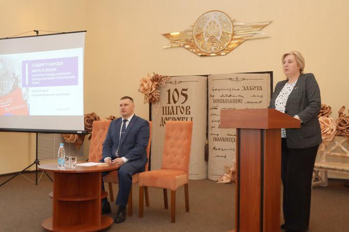 Ольга Лазарева также рассказала о годах оккупации и страшных событиях, происходивших в годы войны в Мстиславском районе. Это 85 сожжённых деревень, боле 3,5 тыс. уничтоженных домов, более тысячи угнанных в немецкое рабство.