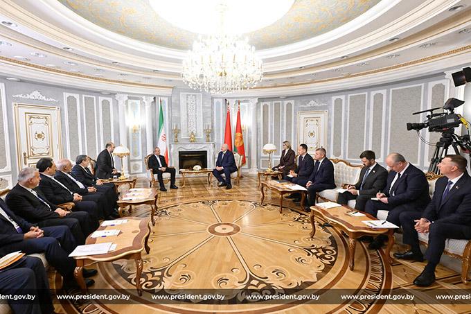 Александр Лукашенко добавил, что Беларусь приветствует вовлечение Ирана в торгово-экономические процессы на пространстве Евразийского экономического союза. Начало функционирования полноформатного соглашения о свободной торговле между ЕАЭС и Ираном расширяет географию торговых связей, открывает новые рынки для стран. Президент уверен, что это является весомым вкладом в формирование фундамента долгосрочного стратегического партнерства между Ираном и ЕАЭС, которое укрепит экономическую безопасность всех его участников.