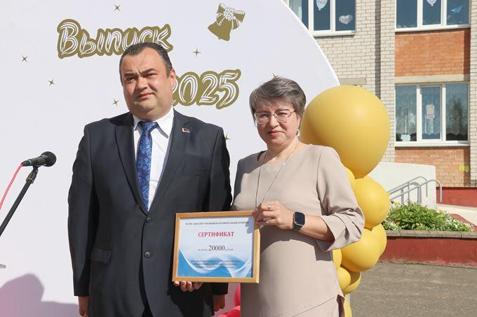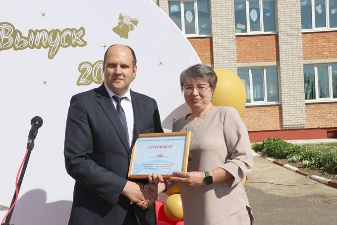Также слова поздравлений прозвучали от шефов школы. Кроме того, они передали учреждению образования сертификаты на обновление материально-технической базы.