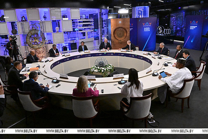 Александр Лукашенко в Москве 25 сентября принял участие в Глобальном атомном форуме, который прошел под девизом «От нового технологического уклада — к новому мировоззрению». Мероприятия форума посетили представители более 100 государств, включая страны СНГ, Азии, Африки, Латинской Америки. В числе высоких гостей, кроме Президента Беларуси, были лидер Мьянмы Мин Аун Хлайн, премьер-министр Армении Никол Пашинян, премьер-министр Эфиопии Абий Ахмед, вице-президент Ирана Мохаммад Эслами, глава МАГАТЭ Рафаэль Гросси.