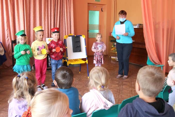 Также госавтоинспектор подготовил для ребят конкурсную программу по Правилам дорожного движения. Дети отвечали на вопросы, отгадывали загадки, смотрели мультфильмы.